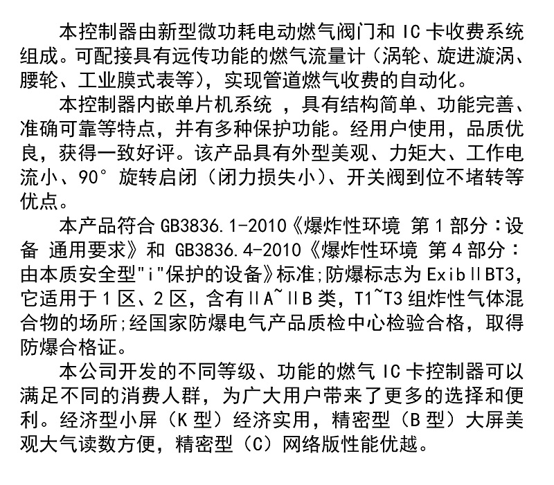 1、實(shí)現(xiàn)預(yù)付費(fèi)管理,自動(dòng)控制燃?xì)庥昧俊.?dāng)用戶預(yù)購(gòu)氣量用盡時(shí),自動(dòng)關(guān)閥,不能過(guò)氣。